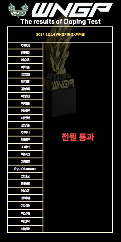 WNGP화성X파이널 도핑테스트 결과