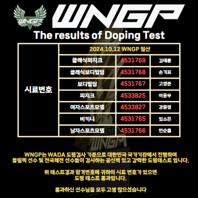 WNGP일산 도핑테스트 결과