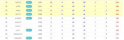 11월 WNGP랭킹 순위