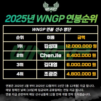 2025년 WNGP 연봉순위
