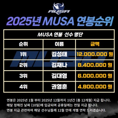 2025년 MUSA 연봉순위