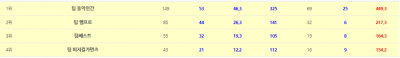 10월 팀 랭킹 순위