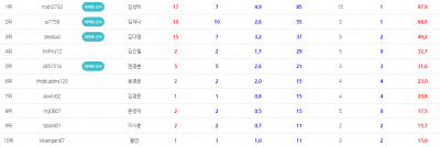 7월 MUSA개인랭킹 1~10위 선수들