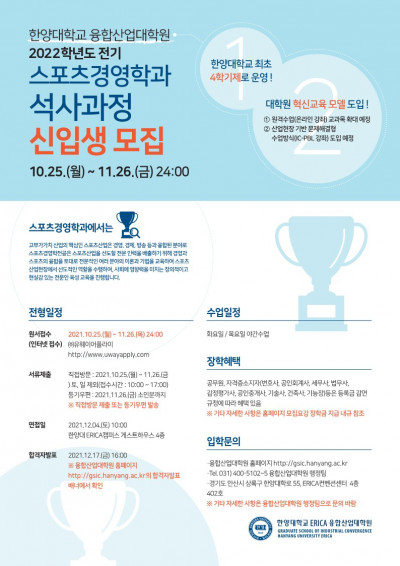 MUSA & WNGP 대상 한양대학교 스포츠경영 석사 과정 모집(융합산업대학원)